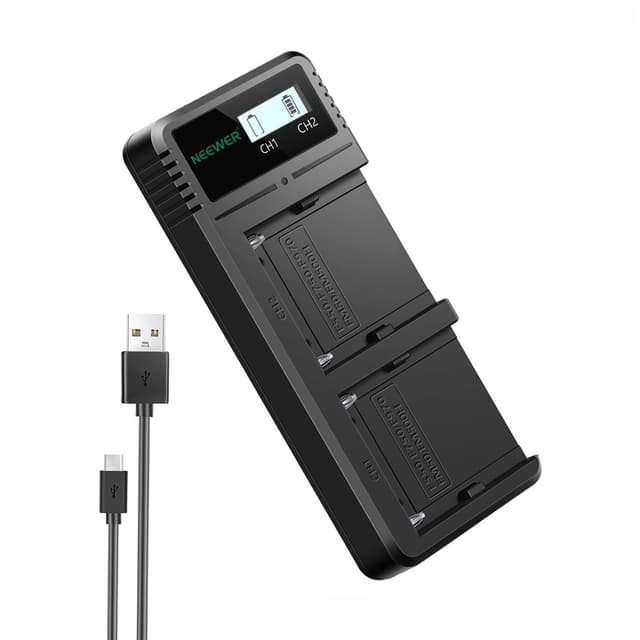 Neewer Dubbel USB-laddare kompatibel med Sony NP-F970 NP-F960 NP-F950 NP-F930 NP-F770 NP-F750 NP-F570 NP-F550 kamerabatteri, snabb batteriladdare med LCD-skärm, mångsidiga laddningsalternativ