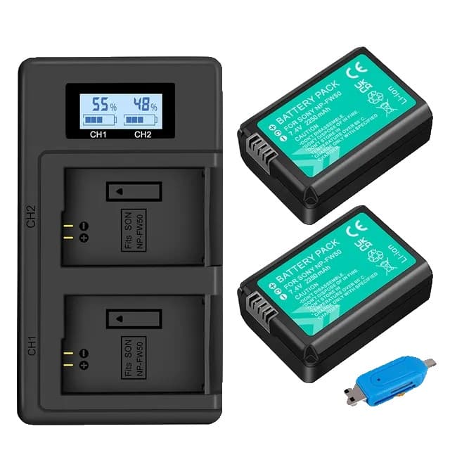 Sony NP-FW50 batteri, LCD dubbel laddare, Kompatibel med Sony Alpha a6500, a6300, a6000, 2 st och laddare
