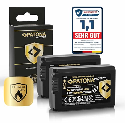 PATONA Protect V1 (2X) batteri NP-FW50 (1 030 mAh) med V1-hölje, utan begränsning av användningen