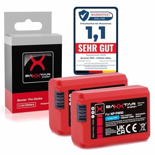 Baxxtar Pro NP-FW50 batteri (2X äkta 1080mAh) med mini USB LCD DUAL-laddare (USB-C och MicroUSB) för Sony ZV-E10 A6000 A6100 A6300 A6400 A6500 A7 A7II A7R A7RII A7S A7SII A5100 A5000 RX10 NEX etc.