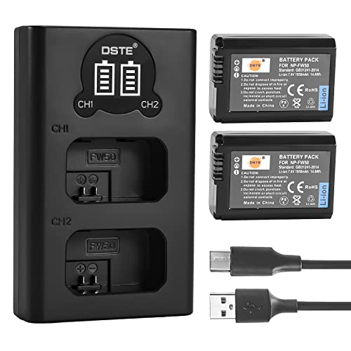 DSTE NP-FW50 ersättningsbatteri (2-pack) och smart LED-dubbel USB-laddare kompatibel med Alpha a6500, a6300, a6000, a7s, a7, a7s ii, a5100, a5000, a3000