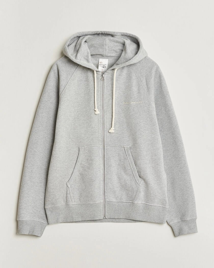 Nudie Jeans Gunde Logo Full Zip Hoodie Grey Melange