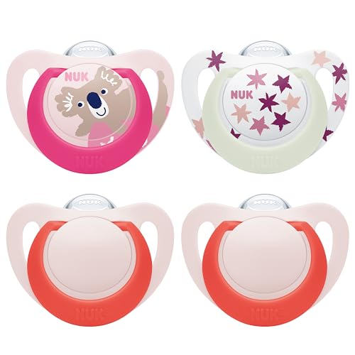 NUK Star Day & Night babynapp | 18-36 månader | Lugnar 99% av barnen | BPA-fri silikonnapp | Med ljuseffekt för att enkelt hitta i mörkret | Koala | 4 stycken