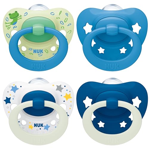NUK Signature Day & Night babynapp | 18-36 månader | Lugnar 95% av barnen | BPA-fri silikonnapp i hjärtform | lyser i mörkret | stjärnor | 4 stycken