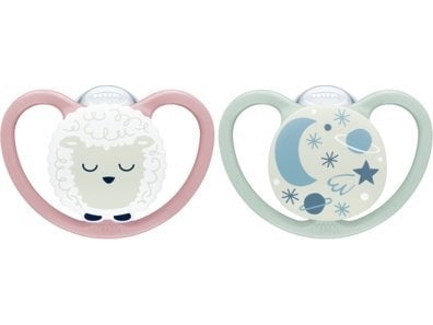 NUK Space Night Silikon-Schnuller 0-6M, 2 St, rosa/mint