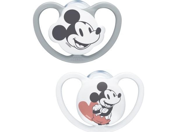 Nuk Napp Lugnande Silikon Space 2-Pack 6-18 Mån Musse Pigg Grå/Vit