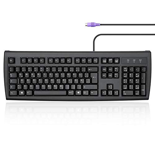 Perixx Periboard-107 svart standard PS2-tangentbord med kabel med numeriskt block, bekväm utskrift med böjda knappar, kompatibel med Windows, 11624, fullformat