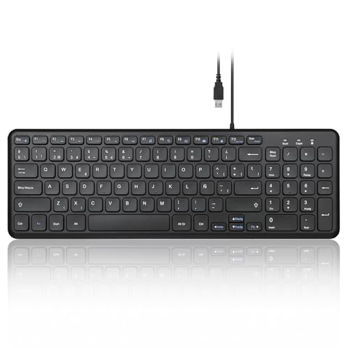 Perixx PERIBOARD-213B Tyst USB-saxtangentbord med kabel - Kompakt design med numeriskt tangentbord - Svart - Qwert Svenska med Ñ