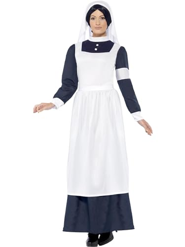 WW1 Nurse Costume, Blue, Dress, Mock Apron & Headpiece (S)