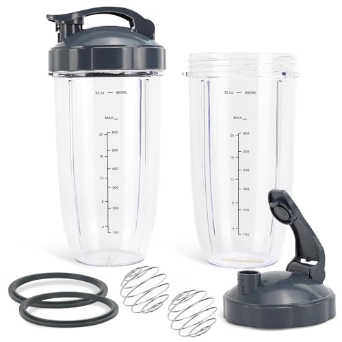 Ersättningsblandarkoppar 32 oz för Nutribullet Pro 900 w och 600 w Serise, reservdelar med flip-Top to-Go lock och gummitätningar tätningsring (2-pack)
