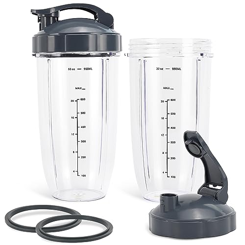 Ersättningsblandarkoppar 32 oz för Nutribullet Pro 900 w och 600 w Serise, reservdelar med flip-Top to-Go lock och gummitätningar tätningsring (2-pack)