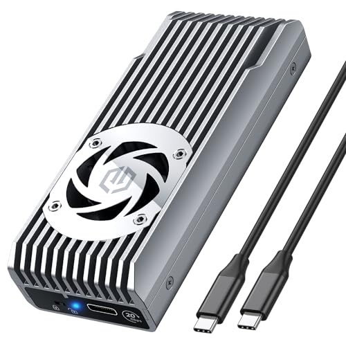 GRAUGEAR Extern [20 Gbit/s] M.2 aluminiumhölje för M.2 NVMe 2280 SSD, M-Key, PCIe 4X, USB-C 20 Gbps, fläktkylning