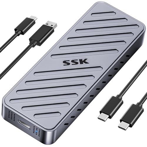 SSK M.2 NVMe-hölje, 20 Gbps externt M2 SSD-hölje med USB C 3.2 GEN2 X2 hårddiskfodral för 2242/2260/2280/2230 SSD NVMe till USB-adapter M-Key med LED-indikator aluminiumlegering