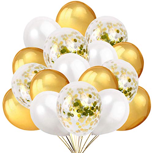 45 Guld och Vita Ballonger Confetti Latex Genomskinlig Ballongdekoration för Nyår, Födelsedag och Graduering Fest
