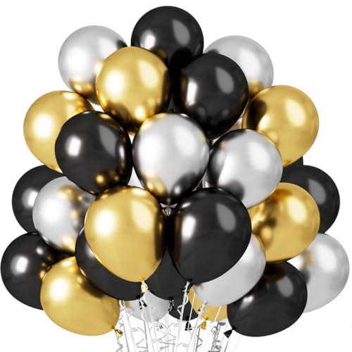 60 stycken ballonger svart guld, heliumballong svart guld silver, metallic guld silver latexballonger, 30 cm svart festballong dekoration för födelsedag examen bröllop förlovning nyår