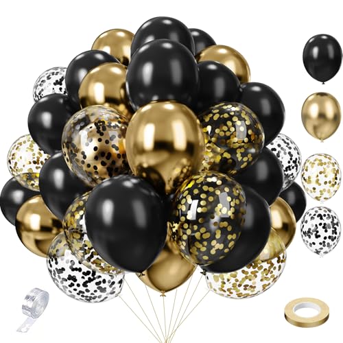 40 Guld och Svarta Ballonger + 1 XXL Gigantisk Genomskinlig Ballong med Metallisk Konfetti, Festdekoration för nyår, Födelsedag och Graduering Fest