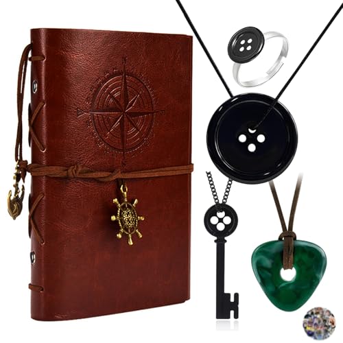 HJYZY Korallin smycken set knapp ögon glasögon nyckel sten halsband anime ring läder skrift journal anteckningsbok med klistermärken 15 st, Metall, Ingen ädelsten