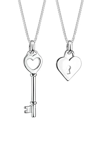 Elli halsband partnkedja nyckel hjärta 925 sterlingsilver, 450, fasettad slipning, Utan