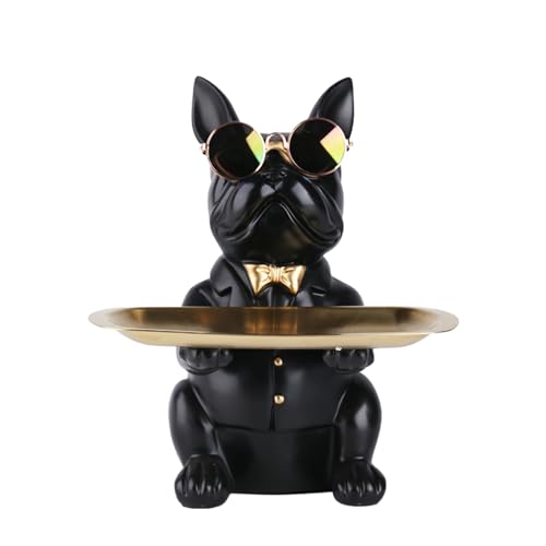 XYQXYQ Multifunktionell bulldoggstaty, harts hund butler dekoration förvaringsbricka, kreativ söt hund förvaringstank, tillämplig plånbok nyckel halsband armband hållare förvaring skål skulptur dekor