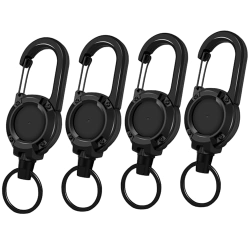 ROSYLEVE utdragbar nyckelband, 4 stycken infällbara nyckelringar med 60 cm karbinhake nyckelring för nyckel bältesklämma och korthållare stålvajer ID för nyckel korthållare (