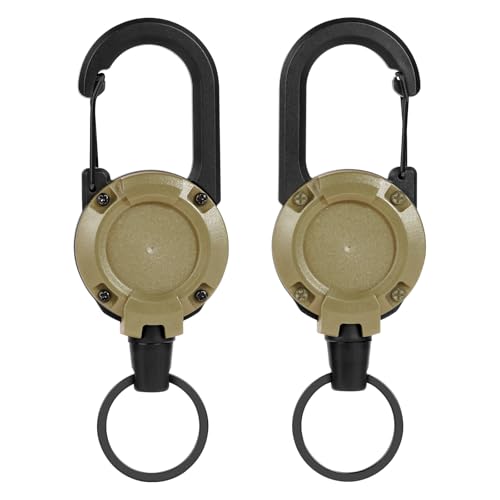 Vicloon Utdragbart nyckelband i kraftig konstruktion, 2 st utdragbara korthållare, utdragbar ID-korthållare med kraftiga clips, utdragbara rullar för nyckelring och ID-korthållare (khaki)