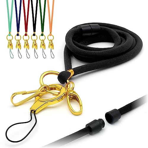 Svart nylonsnodd Nyckelband, snodd korthållare för nacke mjuk bekväm med säkerhetsbrytning, inkluderar gulddesign metallklämmor, ID-bricka hållare tunn rep halsrem av LanyardsTomorrow – enkel 1 st