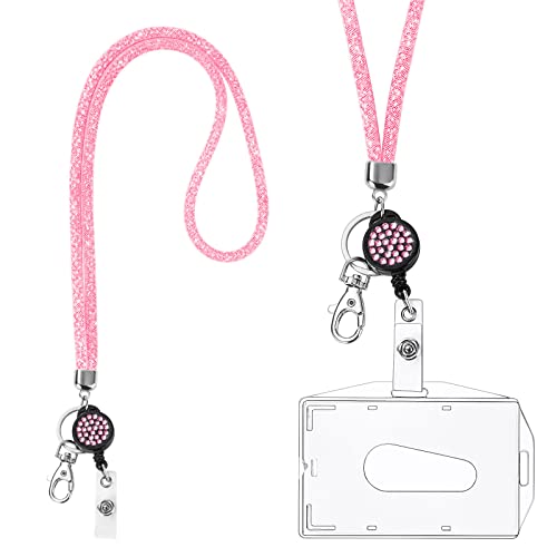 Vicloon Nyckelband med korthållare, kristallnyckelhalsband med transparent ID-korthållare, ID-korthållare, märkessats för nyckelringar och legitimation (rosa)