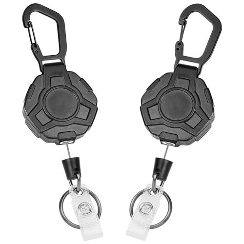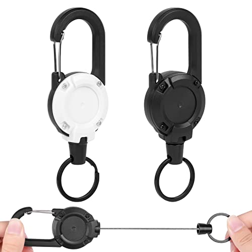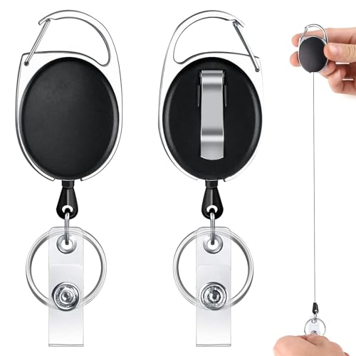 LBJFYHJN 2 st infällbar nyckelring, utdragbar nyckelring med korthållare, nyckelband med 60 cm stålkabel, perfekt för nycklar, ID-kort, åtkomstkort, svart, En Storlek