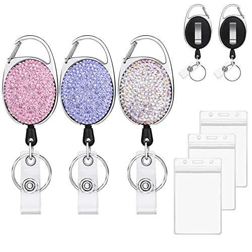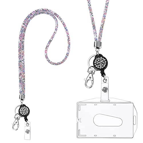 Vicloon Infällbar ID-bricka, 3 st ID-namnbricka rullar och 3 st ID-korthållare, nyckelband bältesklämma med strass för kontorsarbetare lärare (flerfärgad, lila, rosa)