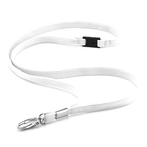 ALG ID Cards® Breakaway Nyckelband, enfärgad med säkerhetsbrytspänne, vit halssnodd med metallklämma, snodd för pass-korthållare (vit nyckelband)