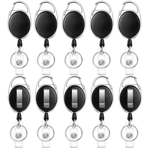 JEFURE utdragbar nyckelhängare 10 stycken, 63 cm utdragbart nyckelband, infällbar ID-korthållare med fickklämma, för nycklar och id-korthållare