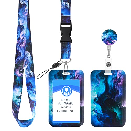 Molain korthållare med snodd och infällbar id-korthållare, stjärnhimmel korthållarset, nyckelrulle, brytbara crossbody-nyckelband (stjärnblå