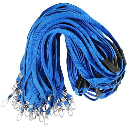 XHDA Set med 50 blå halsbandssnoddar för ID-kort, nyckelband med svängbar krok i metall för ID-korthållare