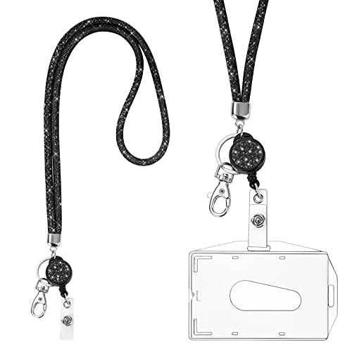 Vicloon Infällbar ID-bricka, 3 st ID-namnbricka rullar och 3 st ID-korthållare, nyckelband bältesklämma med strass för kontorsarbetare lärare (svart, vit, rosa)