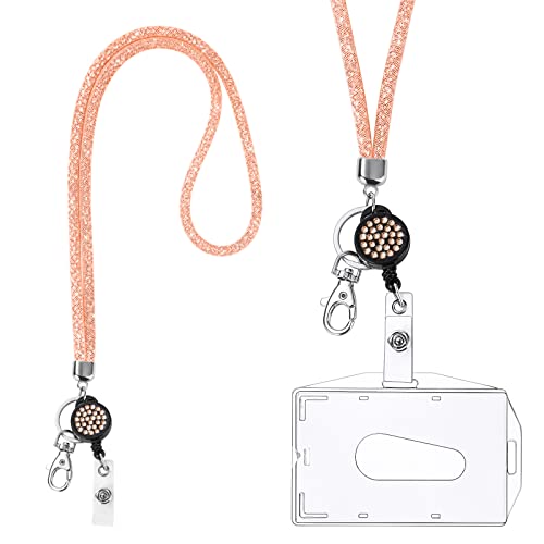Vicloon Nyckelband med korthållare, kristallnyckelhalsband med transparent ID-korthållare, ID-korthållare, märkessats för nyckelringar och legitimation (persikofärgat)