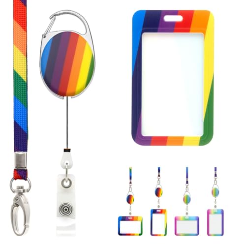 HIFOT 4 stycken nyckelband för enhörning med ID-korthållare, snodd med ID-korthållare och nyckelring, utdragbar ID-kortjojo för mobila mobiltelefoner, nycklar, kontor ID-kort