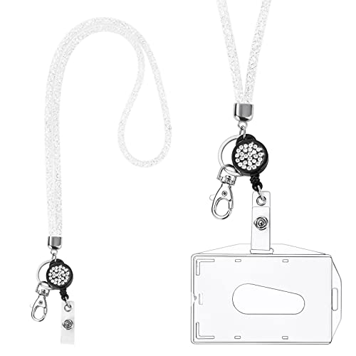 Vicloon Nyckelband med korthållare, kristallnyckelhalsband med transparent ID-korthållare, ID-korthållare, märkessats för nyckelringar och legitimation - vitt