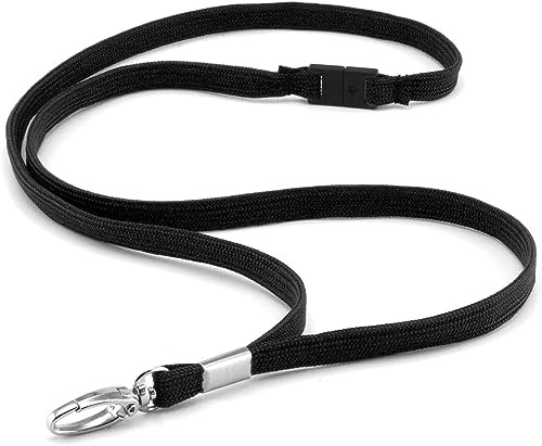 CKB LTD Premium nyckelband halsrem med brytning och vridbar metallklämma för ID-korthållare enfärgad, Svart, Pack of 20