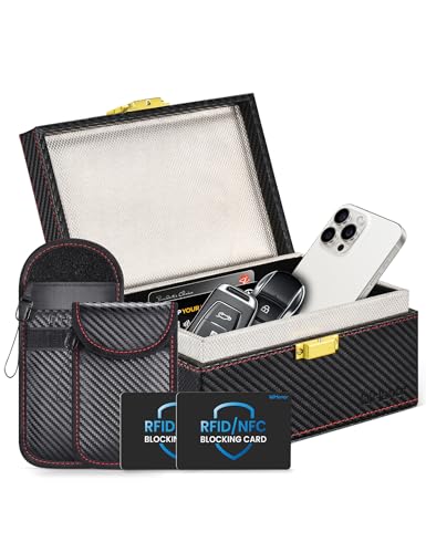 WHonor Faraday låda med påse 2-pack för bilnycklar och RFID-blockeringskort 2-pack, nyckellös bilnyckel signalblockerarlåda, bilnyckel säker Faraday-bur RFID-nyckelbox
