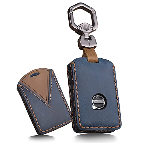 ontto nyckelfodral i läder nyckellöst ingång fjärrkontroll nyckelbricka fodral för XC90 XC70 S60 S80 S90 C30 V70 V90 2018-UP blå