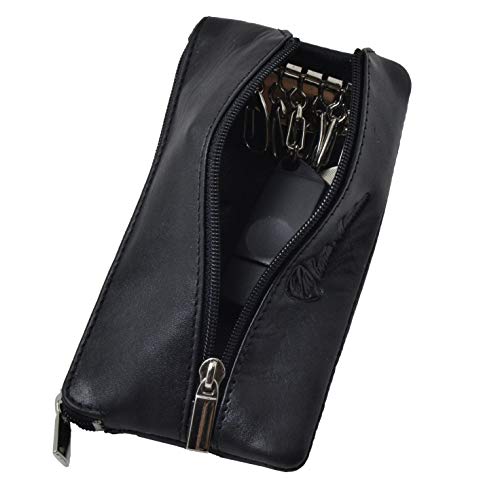 Alassio 42247 – nyckelfodral av äkta läder, nyckelväska med 2 nyckelringar, extra blixtlåsfack och 2 fickor, nyckelorganiserare i svart, nyckelfodral ca 7,5 x 10 cm, svart, ca. 7,5 x 10 x 1 cm,