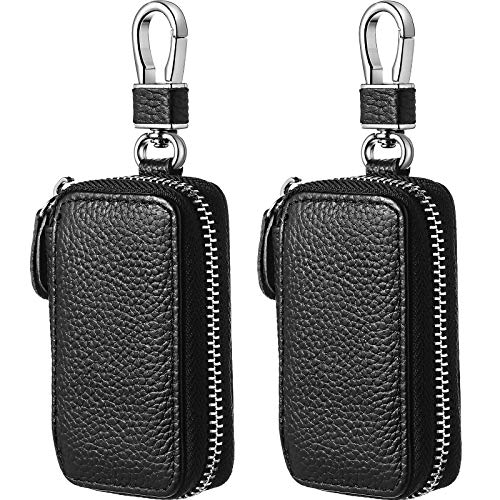 Frienda 2 delar bilnyckelfodral läder bil smart nyckelfodral bilnyckelhållare läder nyckelbricka fodral med metallkrok och nyckelring blixtlåsväska för fjärrkontroll nyckelbricka, Svart, Klassisk