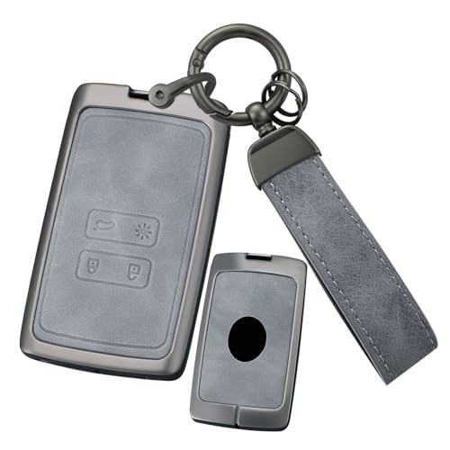 ontto Grå bilnyckel fodral skyddsfodral passar Renault Rafale Austra Clio Espace Talisamn Dacia Duster Jogger Sandero Stepway metall läder nyckelfodral nyckelring 4 knappar