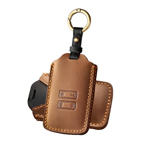 ATFIGII Nyckelbricka fodral kompatibelt med Renault för Dacia Sandero Stepway Duster Clio Jogger Scenisk Zoe för Kadjar för Captur nyckelhållare läder nyckelfodral skydd handgjord nyckelring en brun