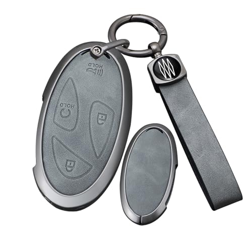 ontto Grå bilnyckel fodral skyddsfodral passar Hyundai Grandeur Grand Prix GN7 Ioniq 6 Kona EV SE Azera Tucson 2023–2025 5/7 knappar metall läder nyckelfodral nyckelfodral nyckelfodral