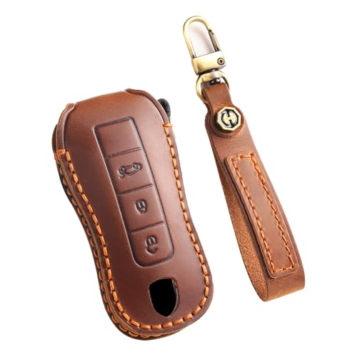 TEcart smart bilnyckelfodral läder nyckelfodral passar till Porsche 911 Cayenne Panamera Taycan Carrera bilnyckelfodral nyckelfodral nyckelskydd 3 knappar brun