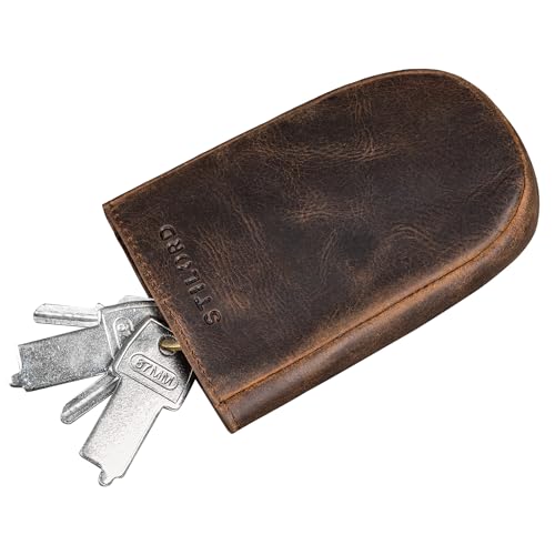 STILORD "Monty" nyckelklocka läder nyckelfodral stor för män kvinnor nyckelfodral nyckelväska bilnyckel nyckelring med nyckelring, svart, S, myntbörs