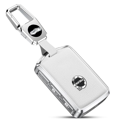 XMSCN Kompatibel med nyckelbricka fodral med nyckelring läder nyckelfodral skydd för XC90, XC60, XC40, S60, S90, V60, V90, Polestar 1, Polestar 2, bilnyckelbricka fodral återpassande skydd, Vitt