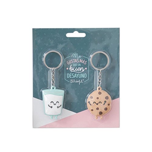 Mr. Wonderful Uppsättning av 2 nyckelhängare Mr. Wonderful kex och glas par Son ¡la Leche, gummi, flerfärgad, 5 x 5 x 1 cm