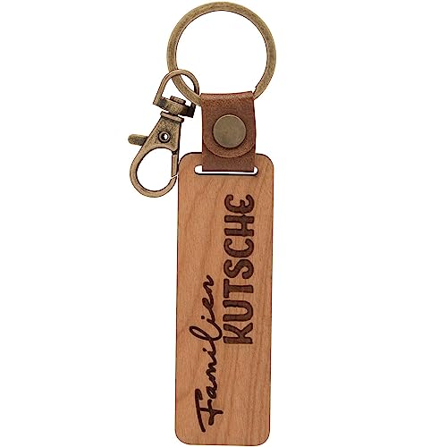 GRUSS & CO Nyckelhållare Nyckelkedja Trämotiv Familjevagn | Berlock av Körsbärsträ med Gravyr Familjevagn, inkl. Karbinhake | 48330, BRUN, Länge 15 cm